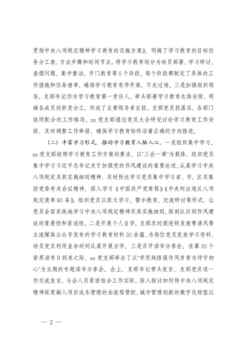 党支部关于精神学习教育情况报告国有企业学习教育工作开展情况总结汇报党委集中整治进度情况报告