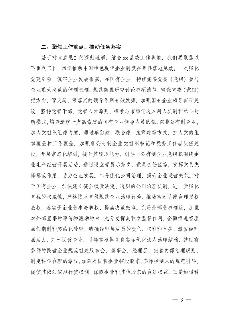 3篇2025年在县委理论学习中心组专题学习关于完善中国特色现代企业制度的意见研讨会上的交流发言