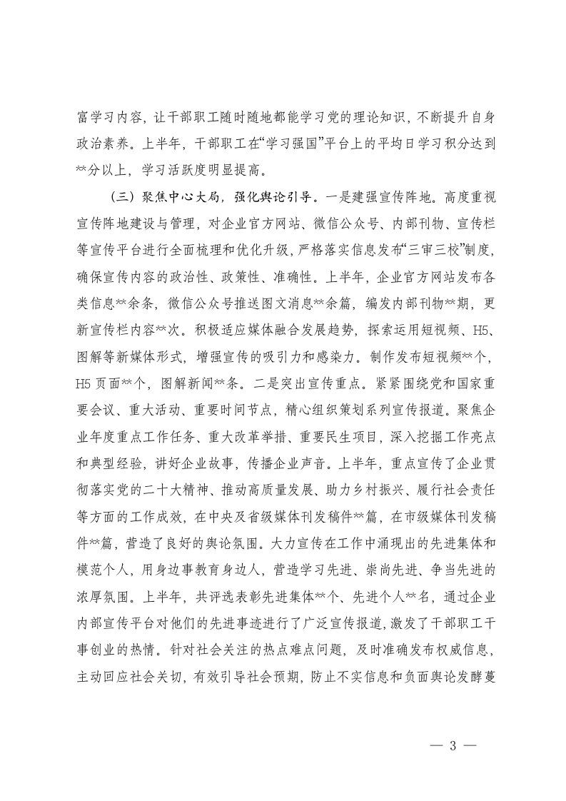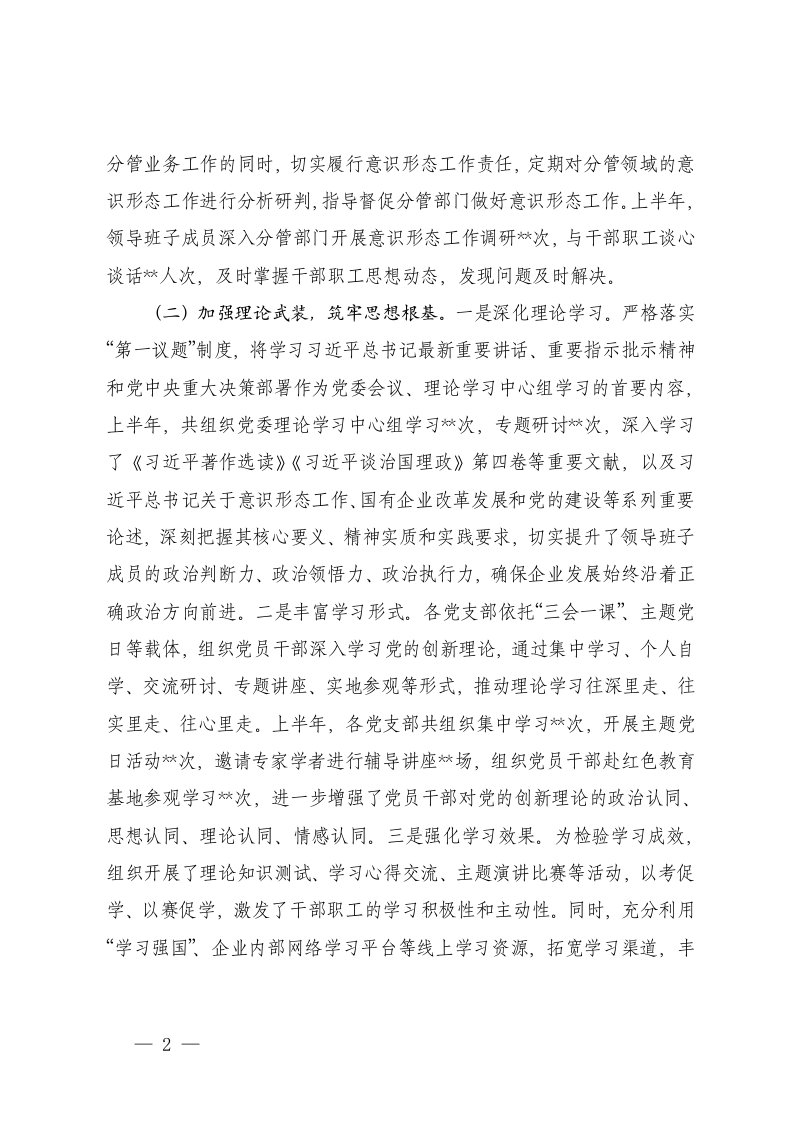 标题:2025年上半年国有企业意识形态工作情况总结5篇