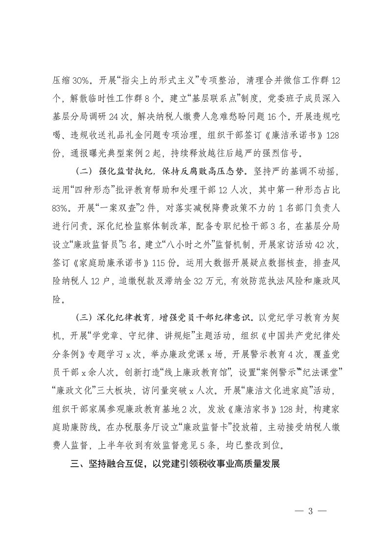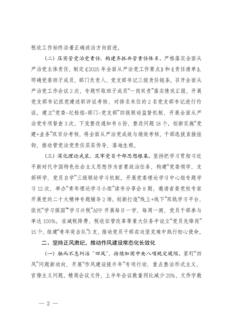 税务局2025年上半年全面从严治党工作情况总结报告2025年上半年全面从严治党党风廉政建设和反腐败工作落实情况报告