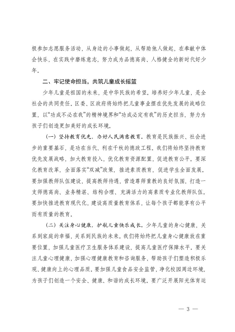 标题:区委书记在2025年六一国际儿童节庆祝活动上的致辞3篇