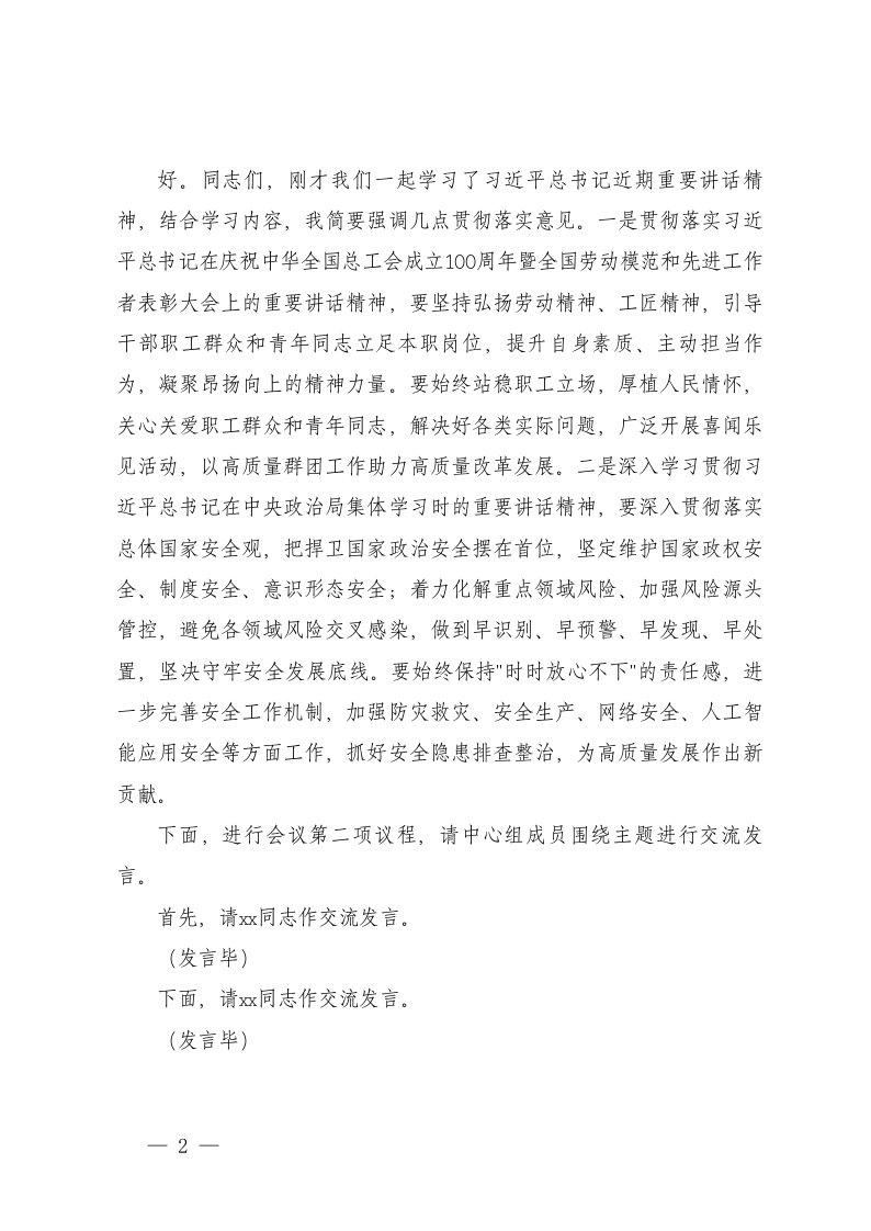 学习领会政治局第二十次集体学习时重要讲话心得体会党委理论学习中心组6月份集体学习会议主持词