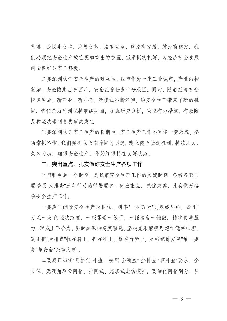 2025年市长在全市安全生产隐患大排查三年行动推进会上的讲话在全市安全生产工作会议上的检讨表态发言