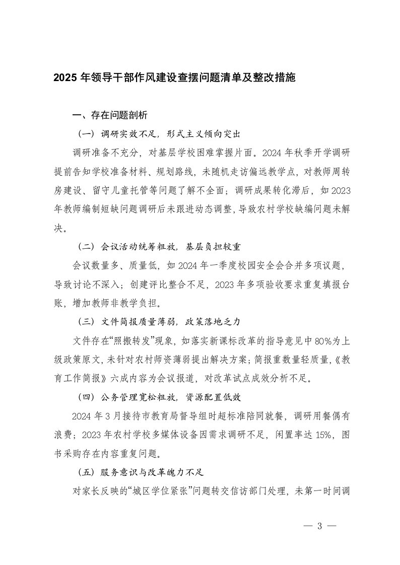 标题:2025年领导班子四风问题查摆清单领导干部作风建设查摆问题清单及整改措施