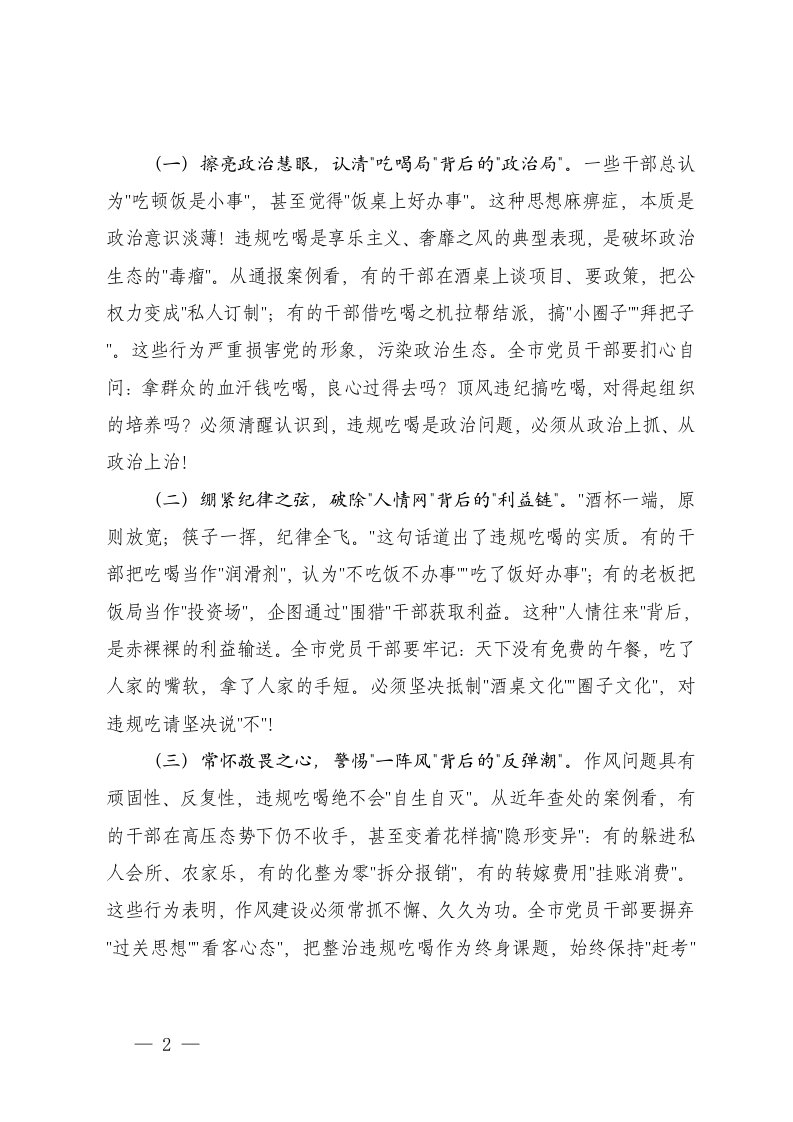 标题:3篇2025年市委书记在全市违规吃喝专项整治工作会议上的讲话