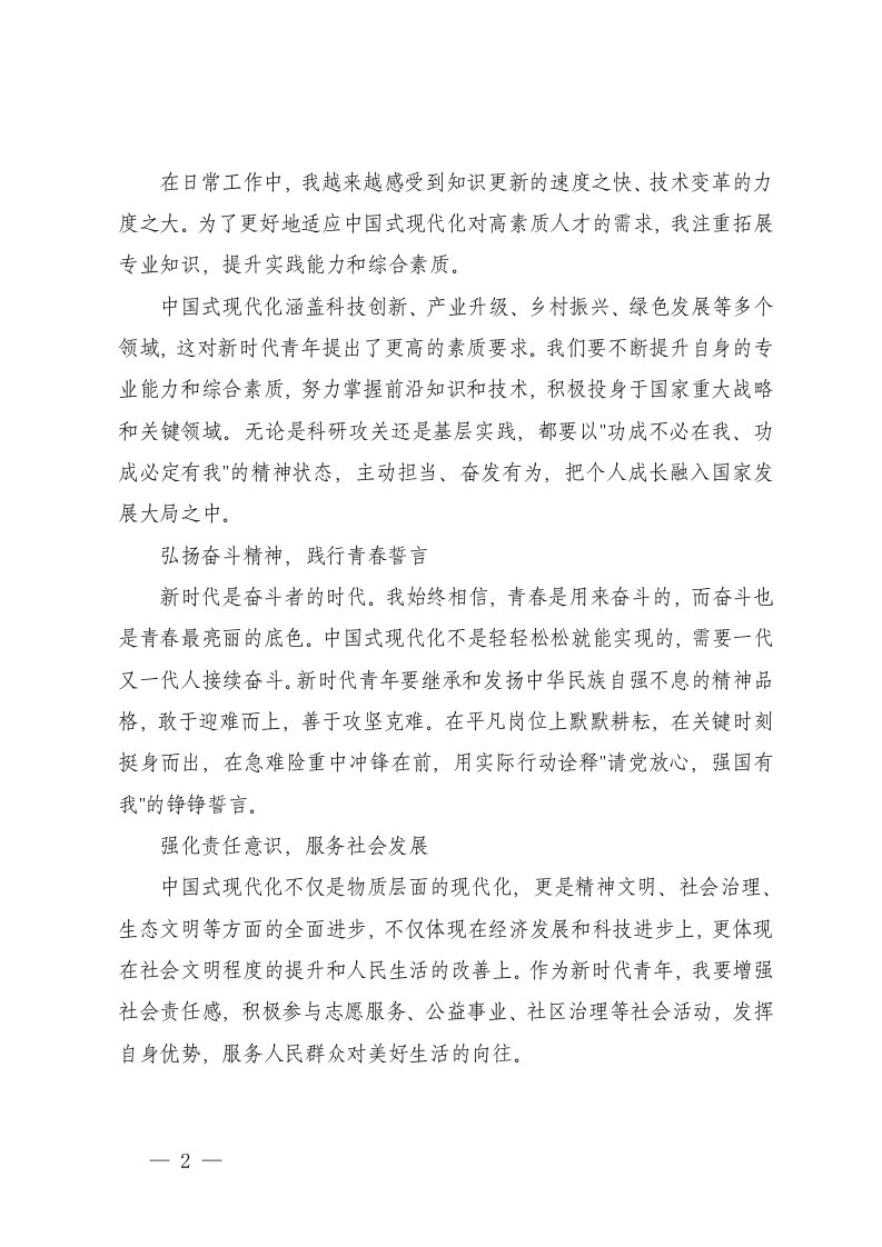 标题:2025年青年党员学习激励新时代青年在中国式现代化建设中挺膺担当心得体会