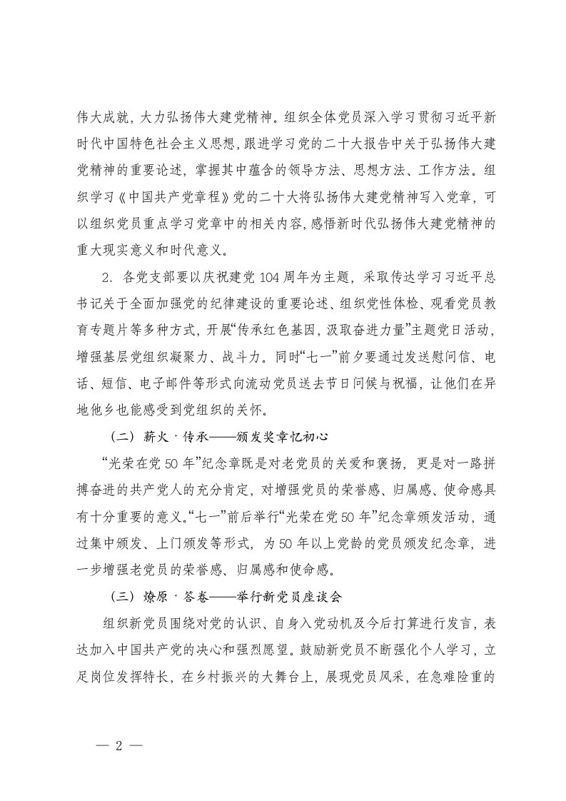 标题:2025年迎七一系列活动实施方案2025年七一建党节系列主题活动内容