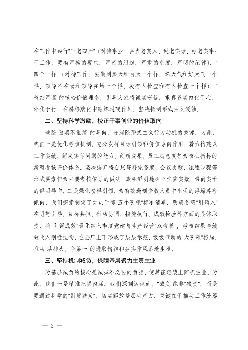 理论中心组学习整治形式主义为基层减负若干规定交流发言国企党委书记在全市整治形式主义座谈会上的经验交流