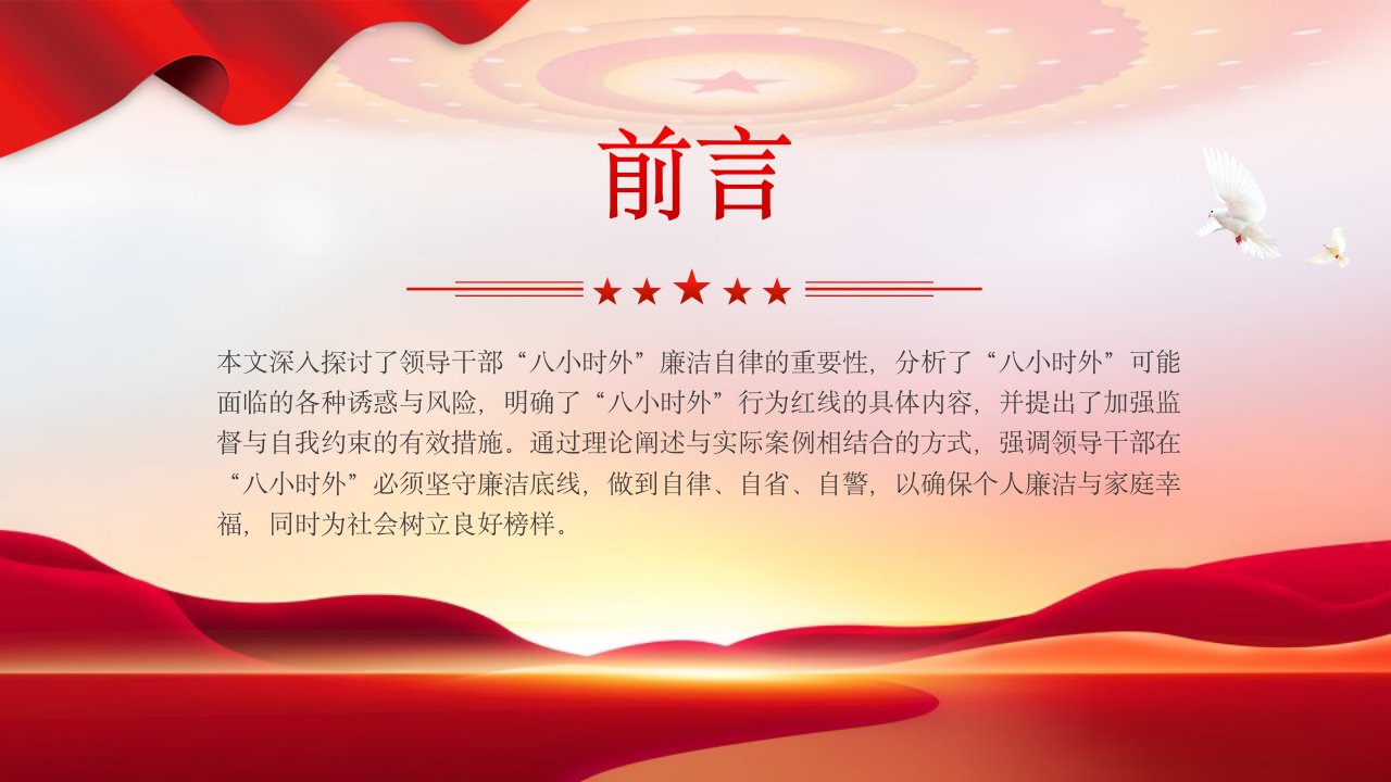 「廉洁自律ppt模板」“八小时外”行为红线不可触碰领导干部廉洁自律的延伸与坚守党课ppt模板(含配套讲稿)