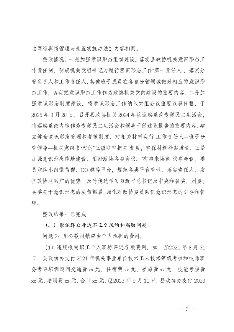 标题:2025年机关党组关于落实县委巡察组巡察反馈意见的整改情况报告