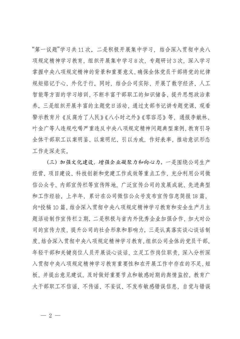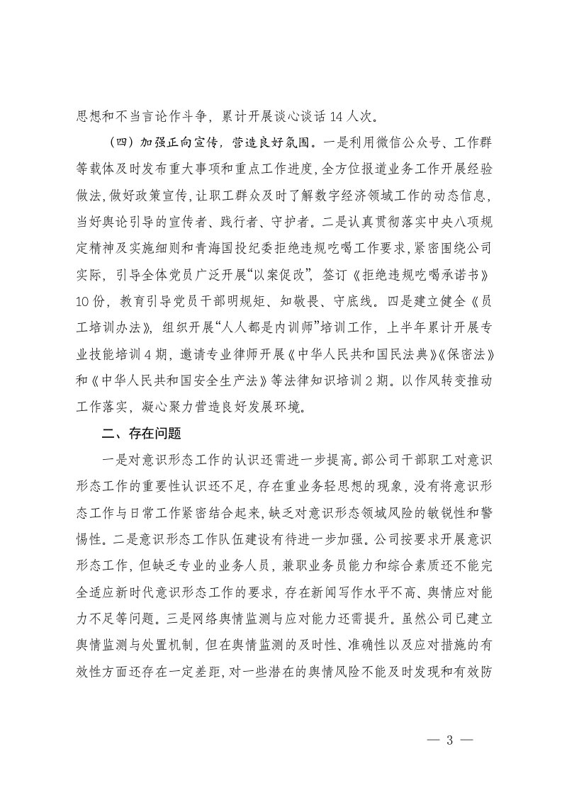 标题:3篇2025年上半年国企意识形态和宣传思想文化工作总结