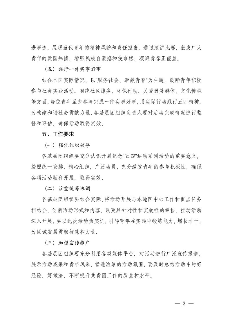 共青团,实施方案,方案,讲话,五四,开幕式,代表大会,五四运动2025年团区委关于开展纪念五四运动系列活动实施方案在共青团县第四次代表大会开幕式上的讲话共青团,实施方案,方案,讲话,五四,开幕式,代表大会,五四运动2025年团区委关于开展纪念五四运动系列活动实施方案在共青团县第四次代表大会开幕式上的讲话