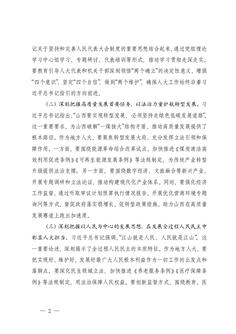 标题:2025年关于人大常委会主任学习习近平总书记视察山西重要讲话重要指示的研讨发言