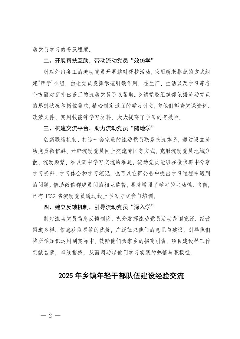 2025年乡镇流动党员管理工作经验材料2025年乡镇年轻干部队伍建设经验交流