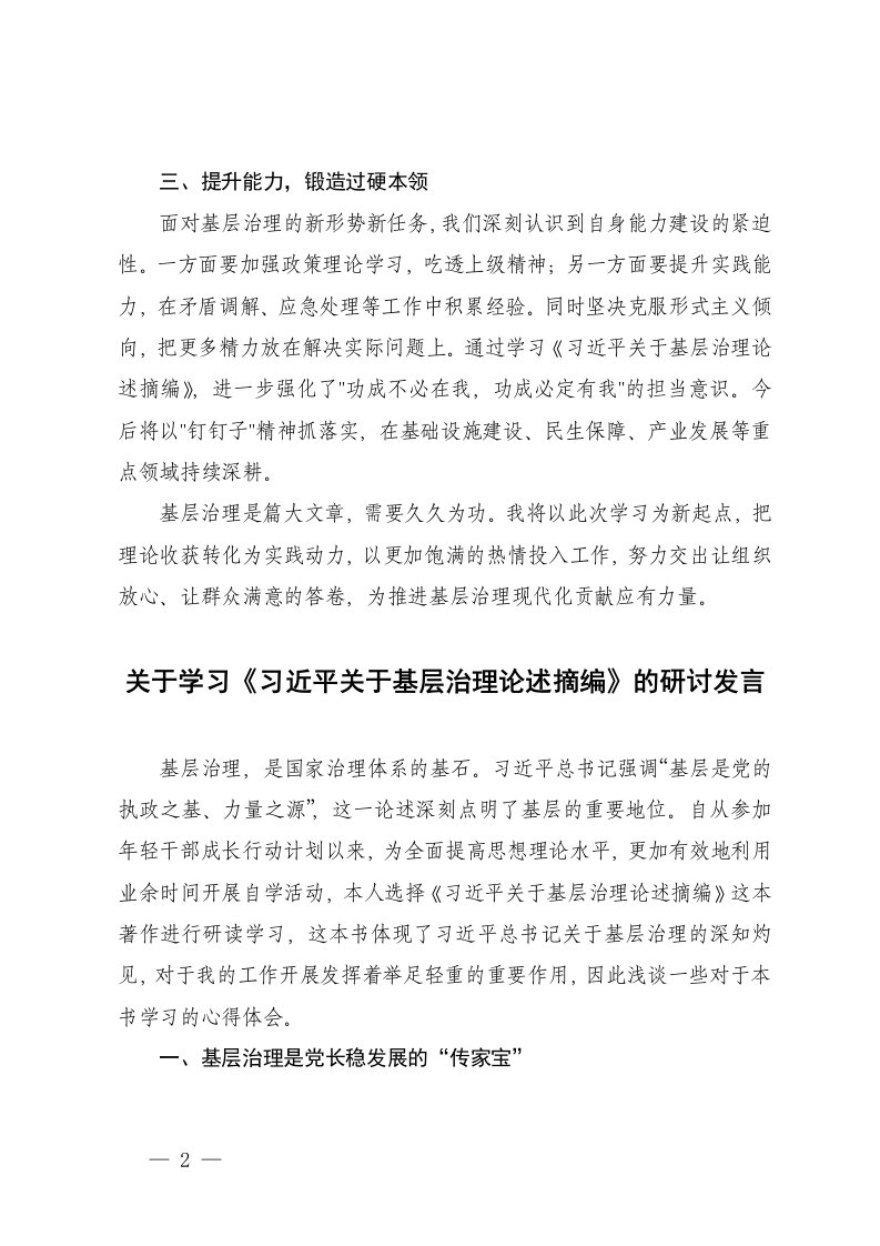 标题:2025年镇党员干部学习习近平关于基层治理论述摘编心得体会