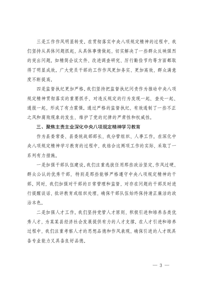 标题:3篇2025年县委组织部部长在深入学习精神学习教育第三次学习专题会上的发言