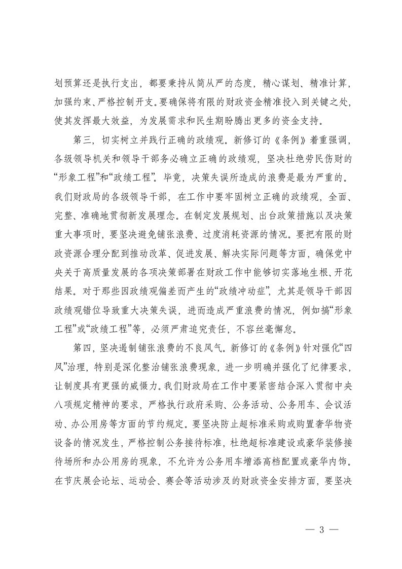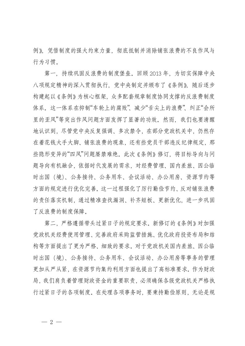 2025年在党政机关厉行节约反对浪费条例理论学习中心组上的研讨发言深入精神学习教育以优良作风推动高质量发展