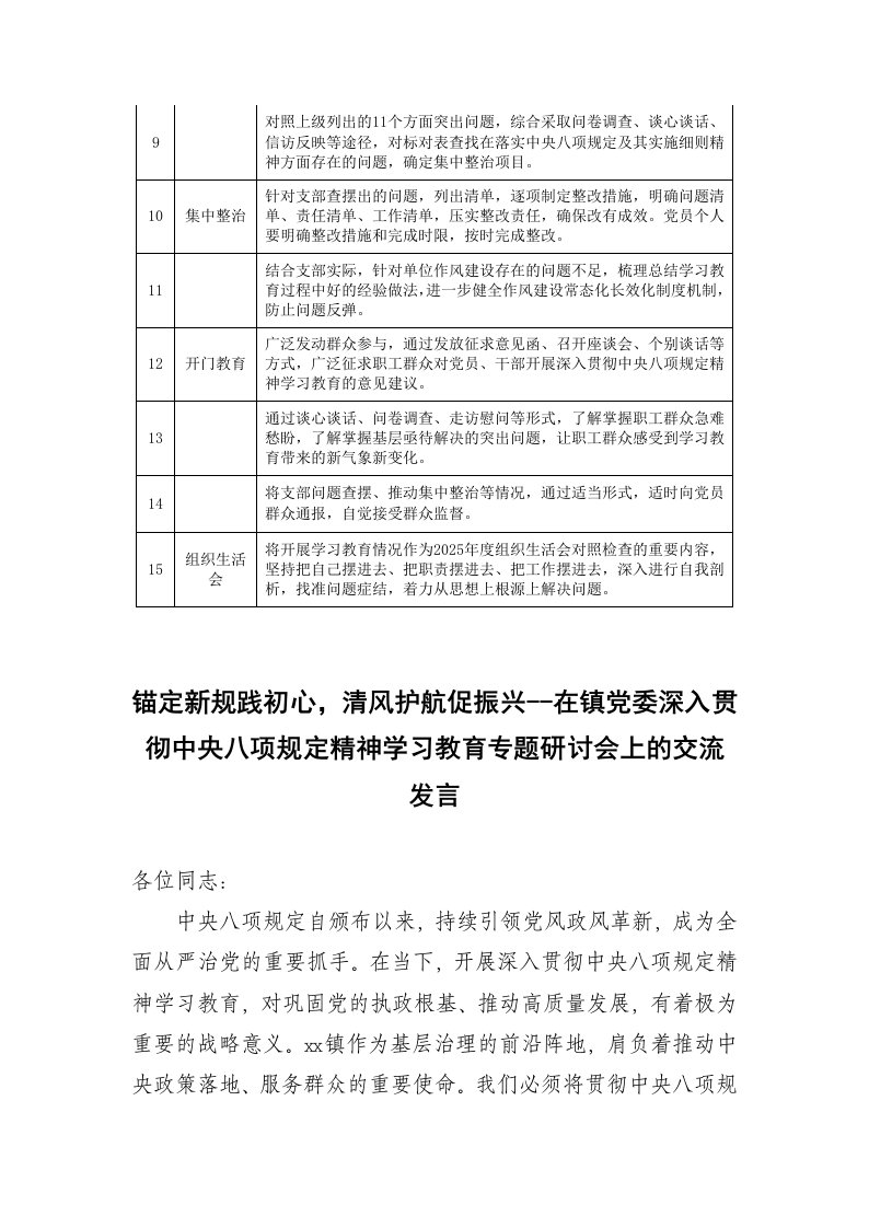 2025年党支部深入精神学习教育工作计划安排表格在镇党委深入精神学习教育专题研讨会上的交流发言