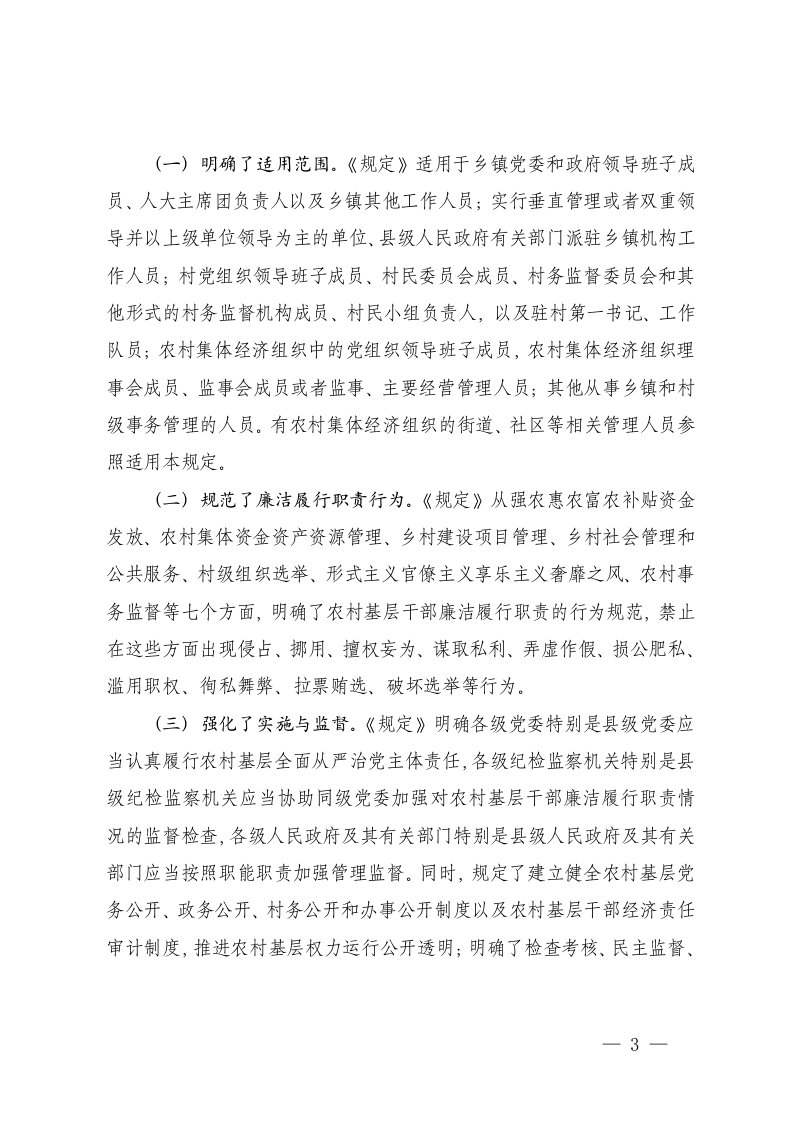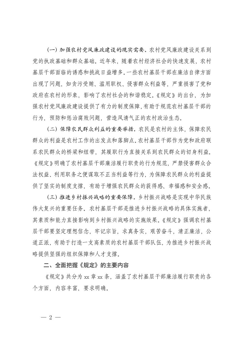 标题:村干部乡镇党委书记关于农村基层干部廉洁履行职责规定的研讨发言
