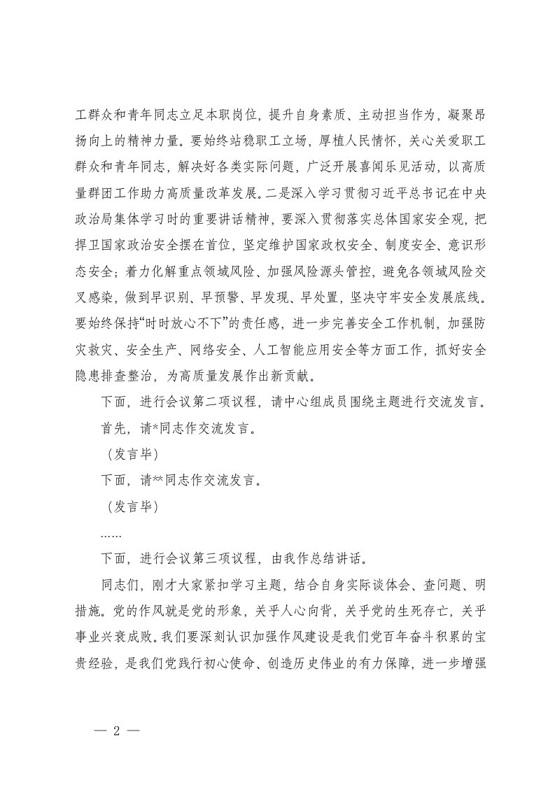 党委理论学习中心组5月份集体学习会议主持词国企班子成员习近平文化思想学习纲要研讨发言材料