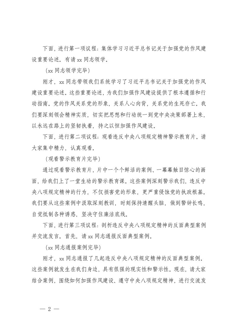 2025年6月副书记在党支部违反精神警示教育会上的主持词在政协机关党组理论学习中心组违反精神警示教育会上的主持词