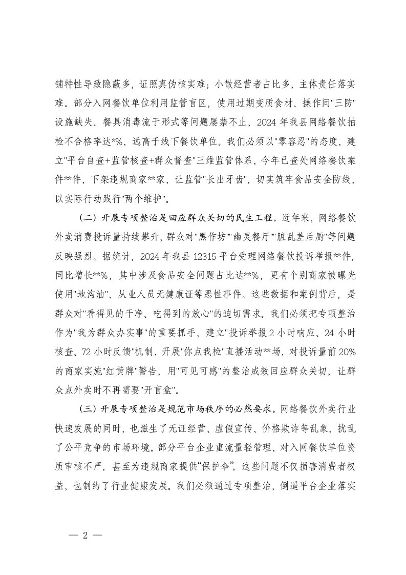 专项整治,讲话,食品安全2025年县长在网络餐饮外卖食品安全专项整治推进会上的讲话在全市校园食堂标准化建设会议上的讲话专项整治,讲话,食品安全2025年县长在网络餐饮外卖食品安全专项整治推进会上的讲话在全市校园食堂标准化建设会议上的讲话