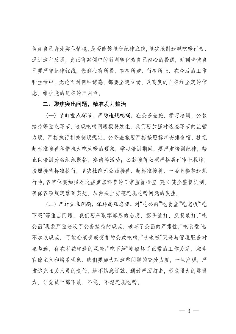 2025年在全市党员干部和公职人员违规吃喝问题专项整治工作部署会上的讲话提纲传达违规吃喝问题交流发言