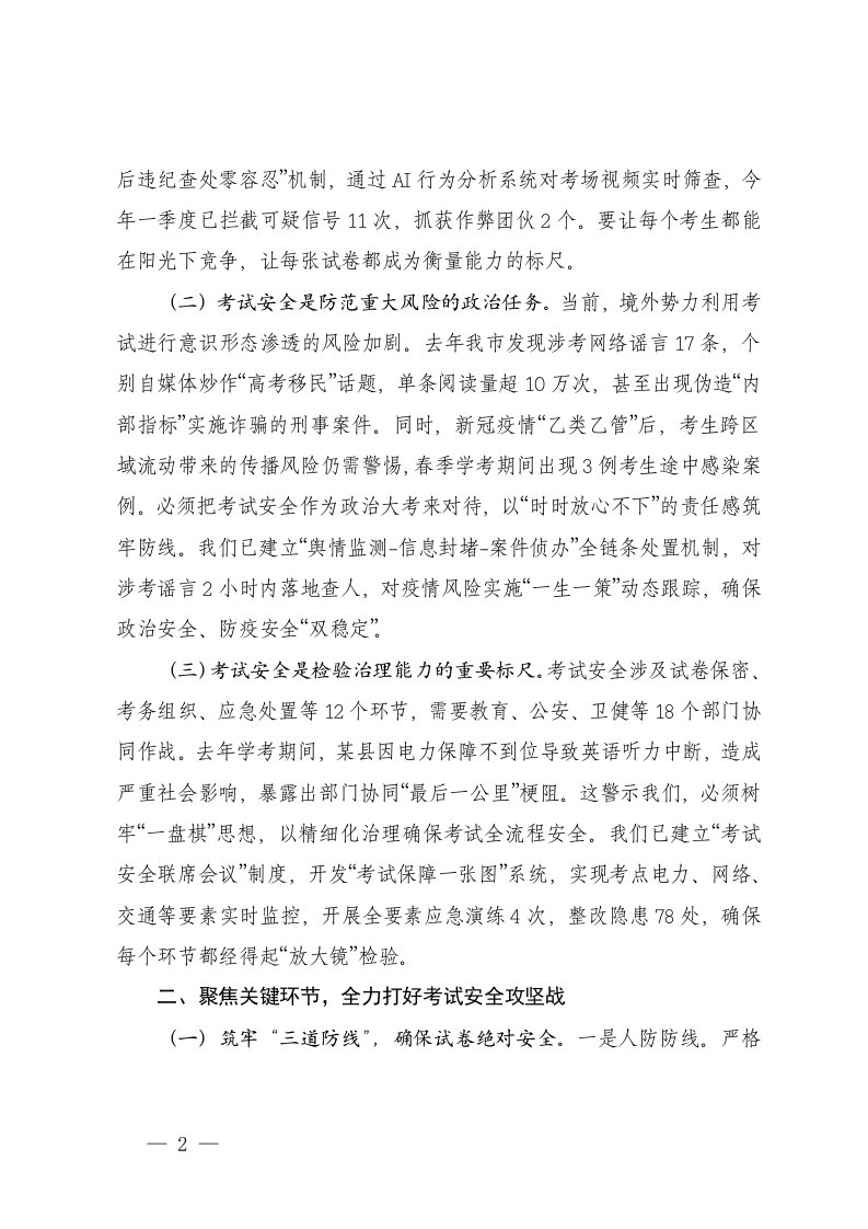 市委副书记在2025年全市高考学考中考安全工作会上的讲话教育局长在全区教育系统安全工作会议上的讲话