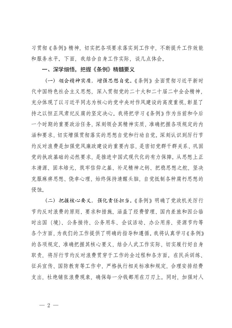 2025年6月在党委理论学习中心组专题学习党政机关厉行节约反对浪费条例研讨会上的交流发言