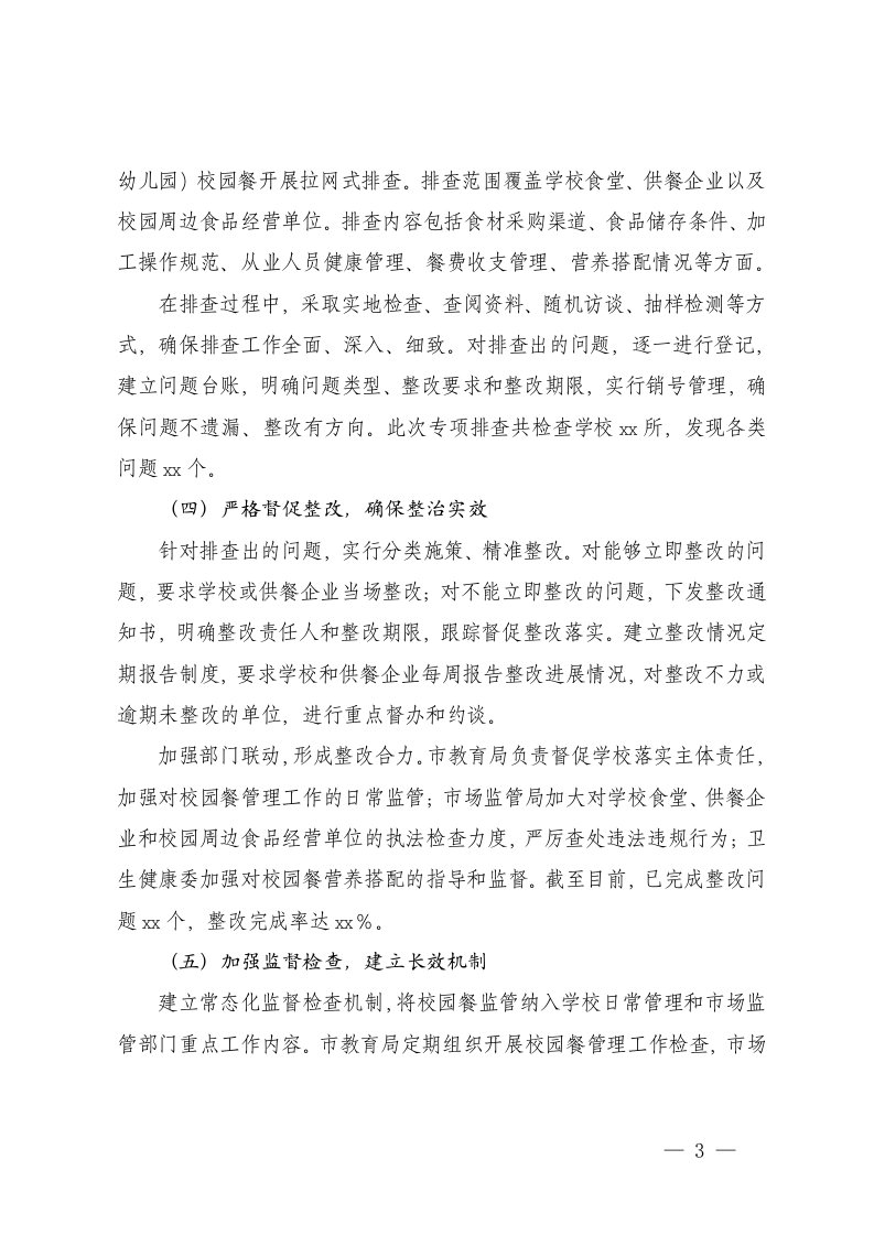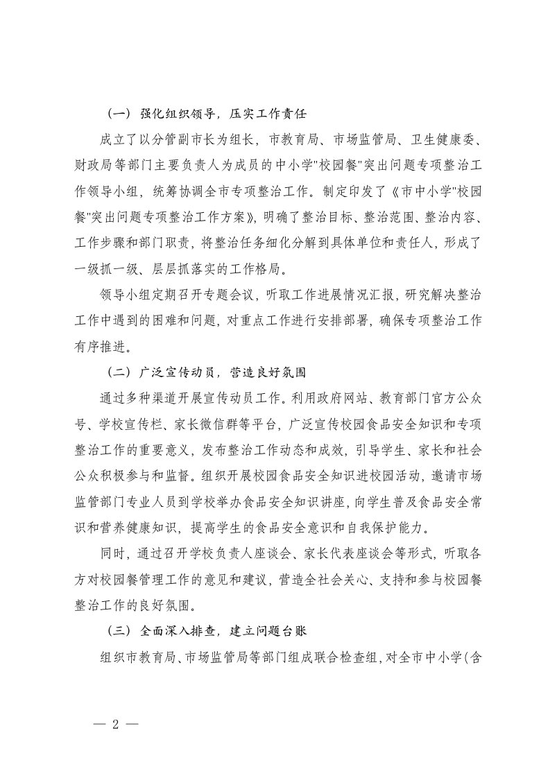 4篇2025年关于市中小学校园餐突出问题专项整治情况的报告整治监督检查情况通报学校校园餐专项整治推进工作交流发言