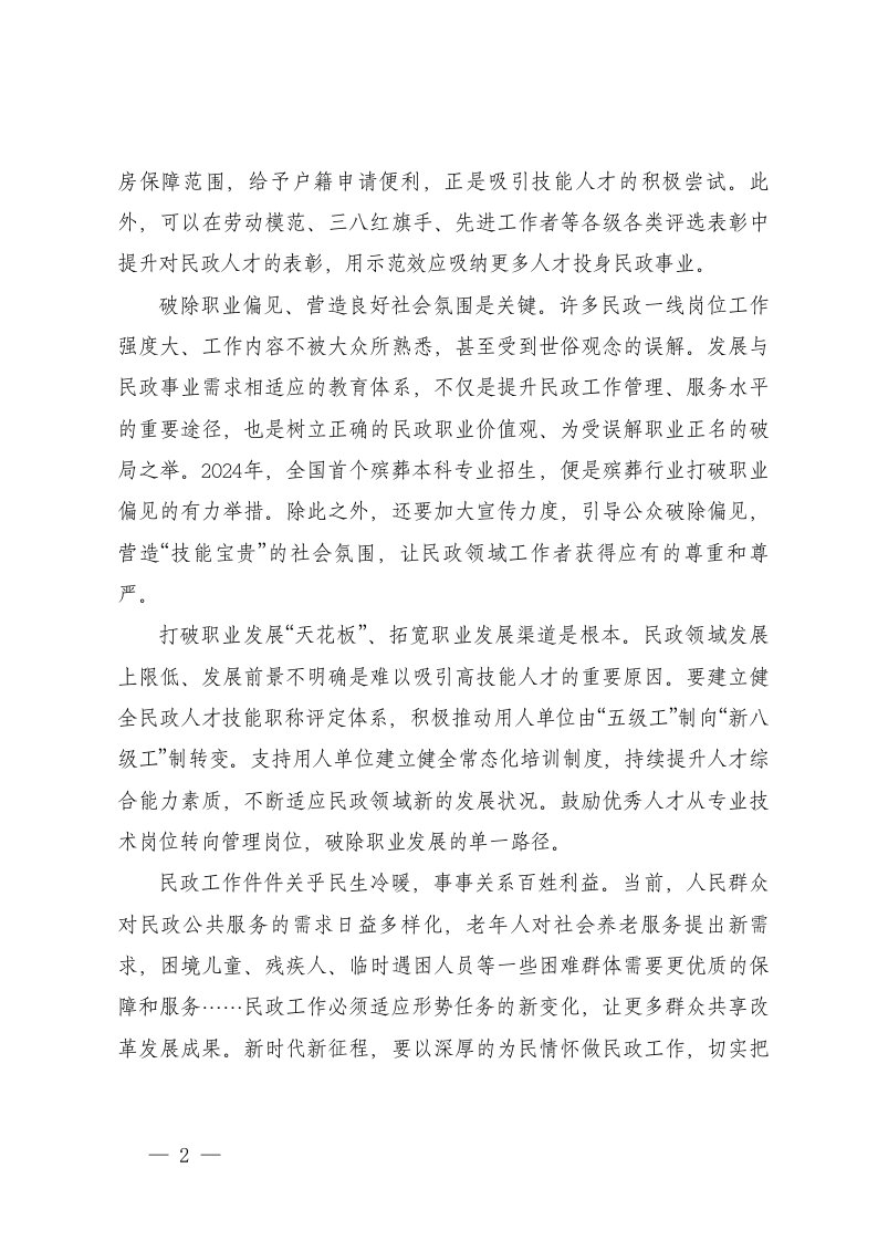 标题:学习贯彻2025年关于加强新时代民政高技能人才队伍建设的意见心得体会附笔记