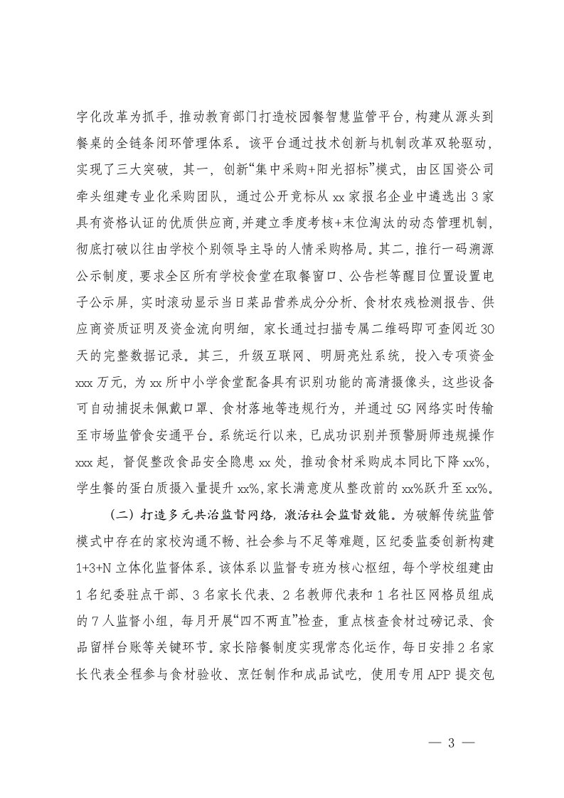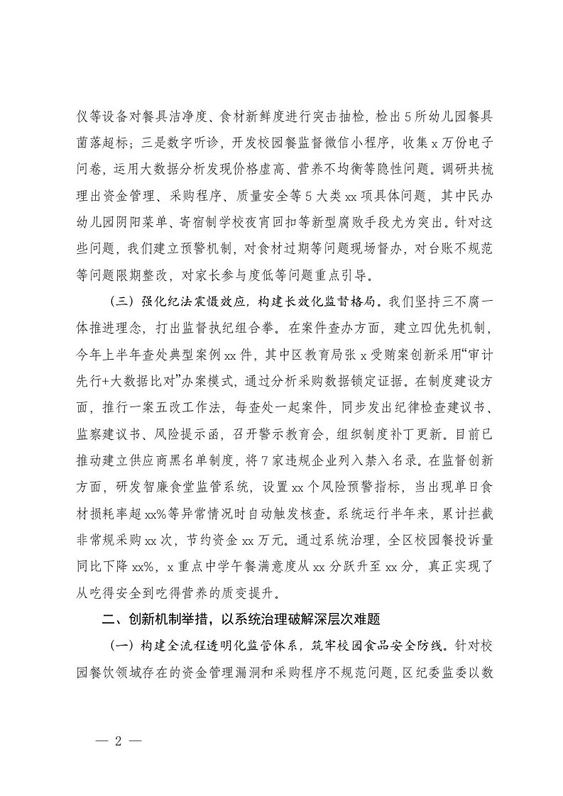 标题:区纪委监委深化校园餐突出问题治理工作汇报在2025年校园食品安全培训会上的讲话