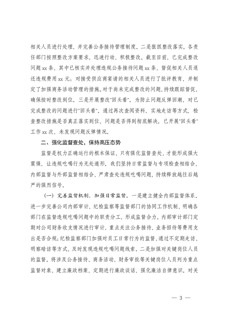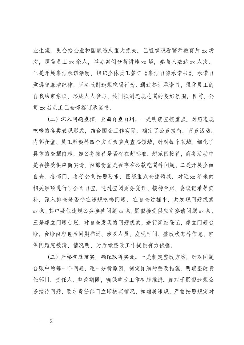 情况汇报,专项整治,汇报,国企,工作,专项整治工作2025年国企关于违规吃喝专项整治工作进展情况汇报情况汇报,专项整治,汇报,国企,工作,专项整治工作2025年国企关于违规吃喝专项整治工作进展情况汇报