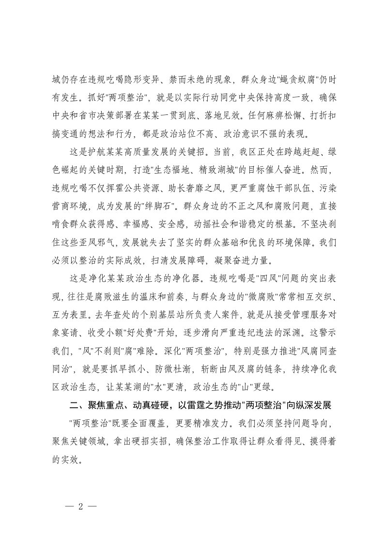 在违规吃喝突出问题集中整治暨群众身边不正之风和腐败问题集中整治工作推进会上的讲话在2025年整治群众身边不正之风警示教育大会上的讲话