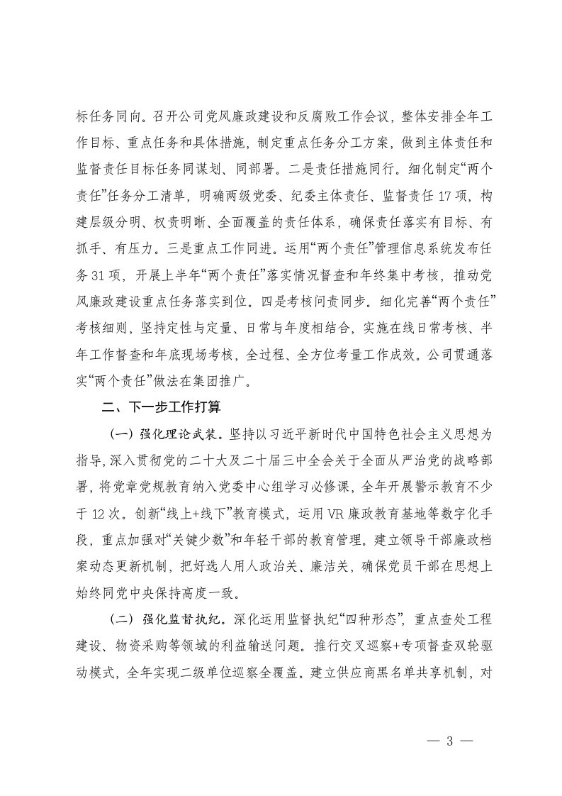 标题:2篇国企党委2025年上半年党风廉政建设工作总结
