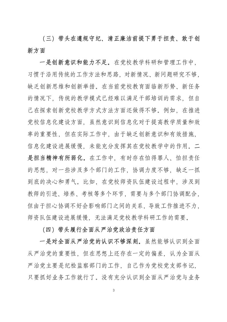 标题:2024年度组织生活会党支部书记个人对照检查材料三篇