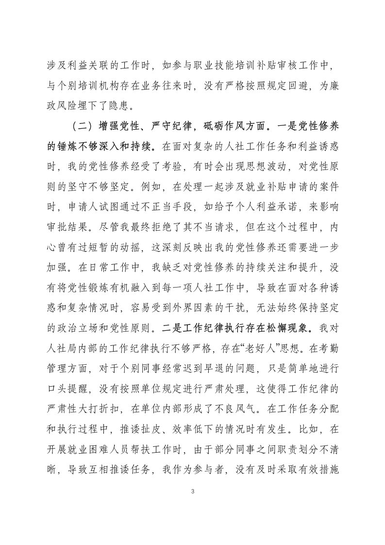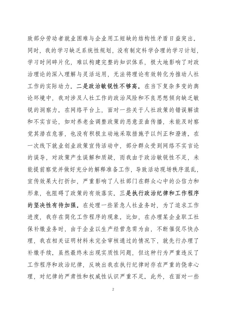 党支部2025年度组织生活会个人...