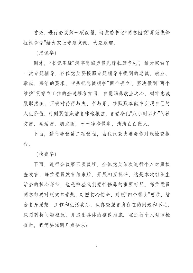 主持词,组织生活会,组织生活,生活2024年度组织生活会主持词两篇主持词,组织生活会,组织生活,生活2024年度组织生活会主持词两篇