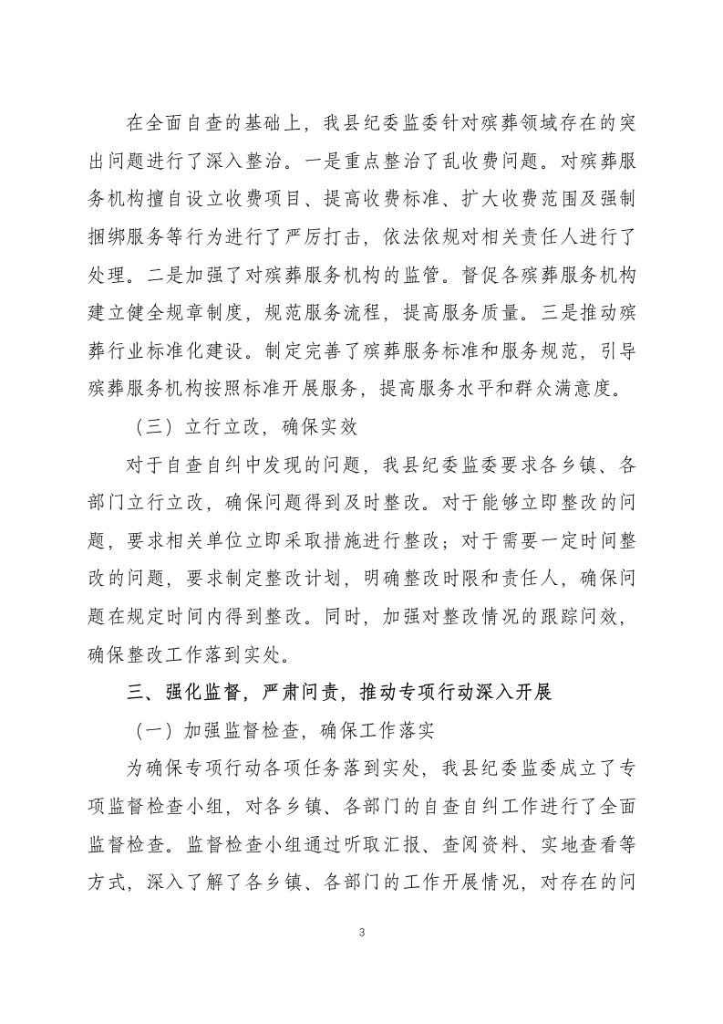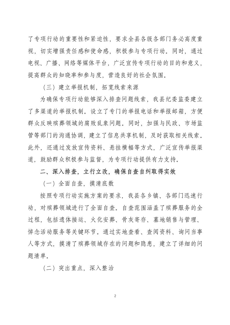 标题:关于整治殡葬领域腐败乱象专项行动自查自纠工作进展情况的报告两篇