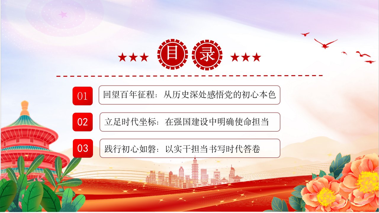 「党史历史ppt模板」初心领航担使命实干奋进新征程七一建党节党课ppt模板(带内容)