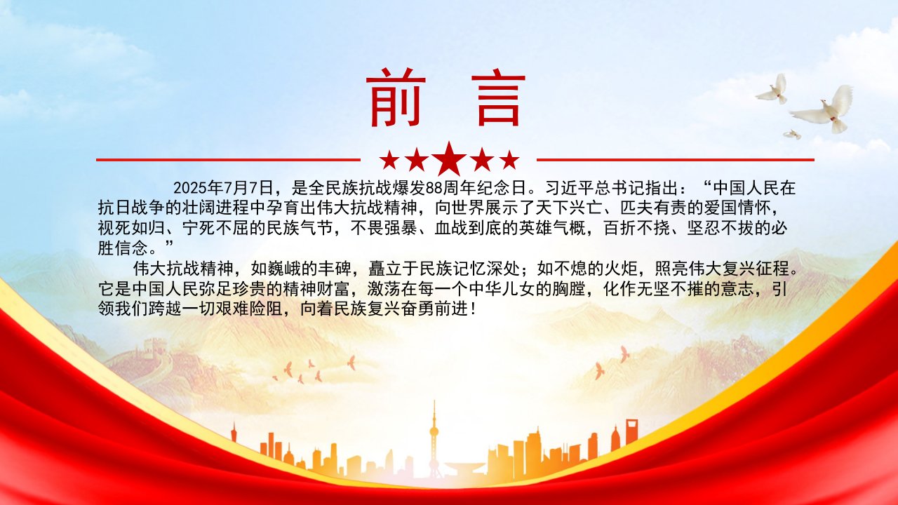 党课ppt,党课ppt模板,民族复兴,周年,弘扬,抗战精神,纪念日,党史,党课,周年纪念,ppt模板「党史历史ppt模板」全民族抗战爆发88周年纪念日弘扬伟大抗战精神汇聚民族复兴力量党课ppt模板(含配套讲稿)党课ppt,党课ppt模板,民族复兴,周年,弘扬,抗战精神,纪念日,党史,党课,周年纪念,ppt模板「党史历史ppt模板」全民族抗战爆发88周年纪念日弘扬伟大抗战精神汇聚民族复兴力量党课ppt模板(含配套讲稿)