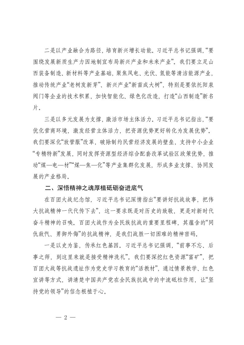 标题:5篇2025年学习山西考察重要讲话精神交流研讨心得体会