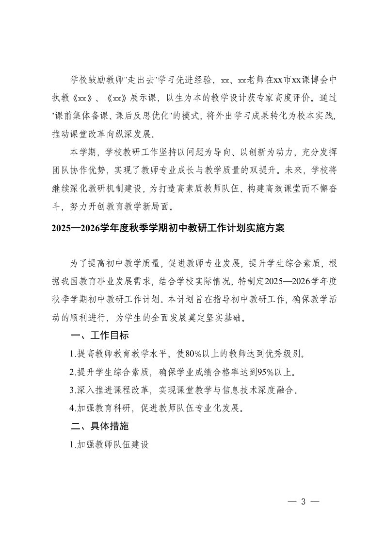 工作计划,工作总结,实施方案,总结,计划,方案,工作中学2025年上学期教研工作总结20252026学年度秋季学期初中教研工作计划实施方案工作计划,工作总结,实施方案,总结,计划,方案,工作中学2025年上学期教研工作总结20252026学年度秋季学期初中教研工作计划实施方案