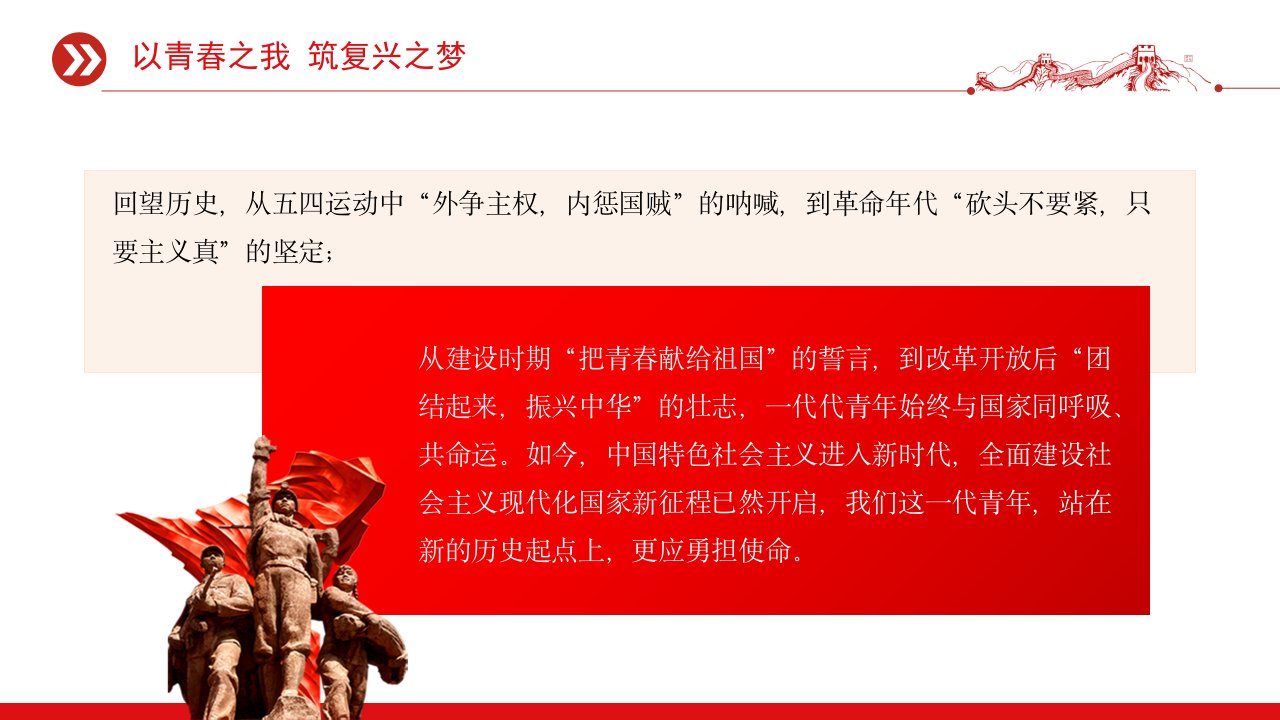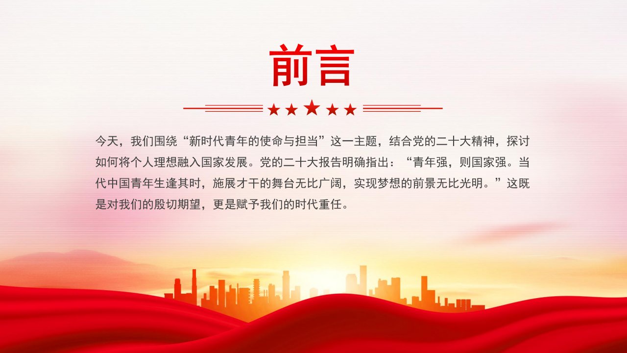 「党员学习ppt模板」新时代青年的使命与担当以青春之我筑复兴之梦党课ppt模板(含配套讲稿)