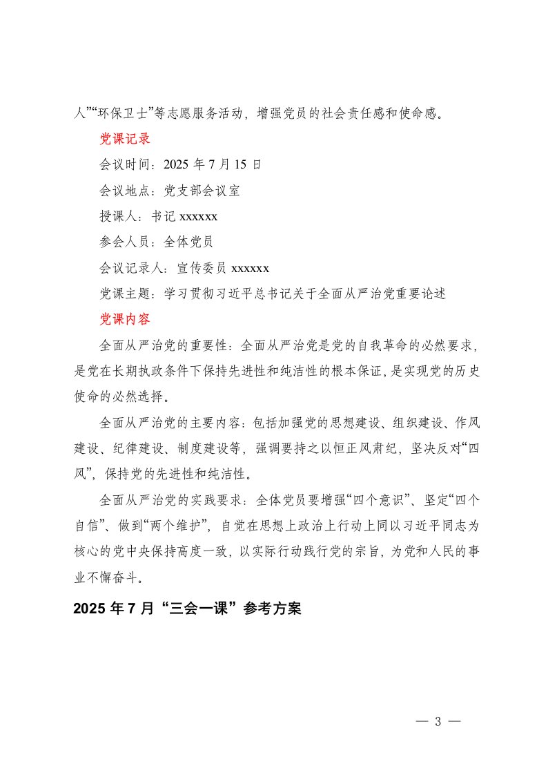 党支部,三会一课,方案,基层党支部,党课,会议记录,党员大会基层党支部2025年7月三会一课会议记录支部委员会党小组会议党员大会党课记录三会一课参考方案党支部,三会一课,方案,基层党支部,党课,会议记录,党员大会基层党支部2025年7月三会一课会议记录支部委员会党小组会议党员大会党课记录三会一课参考方案