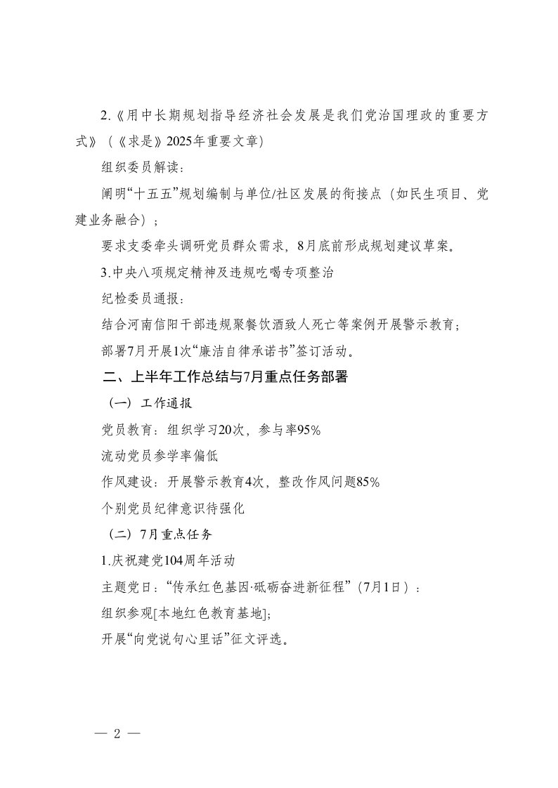 三会一课2025年7月份支委会会议记录基层党支部三会一课会议记录支部委员会党小组会议党员大会党课记录