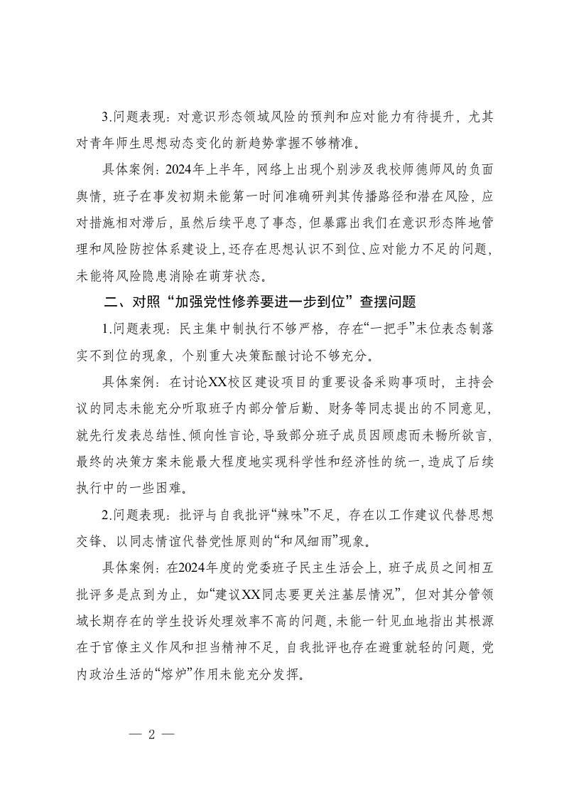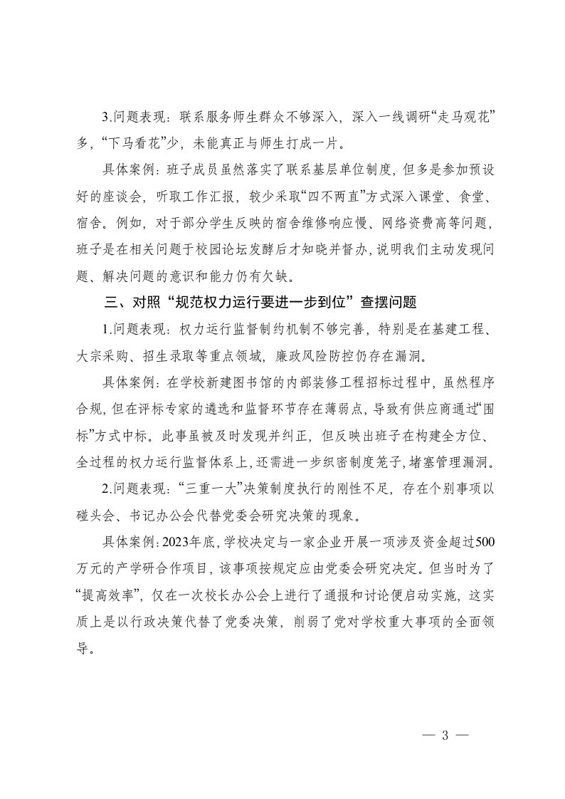 学校领导班子对照五个进一步到位查摆问题台账在党组理论学习中心组五个进一步到位专题学习研讨会上的发言