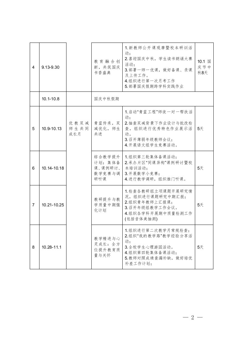 2025-2026学年度秋季第一学期教学工作安排表可编辑2025-2026年秋季学期学校工作计划9月-1月工作安排