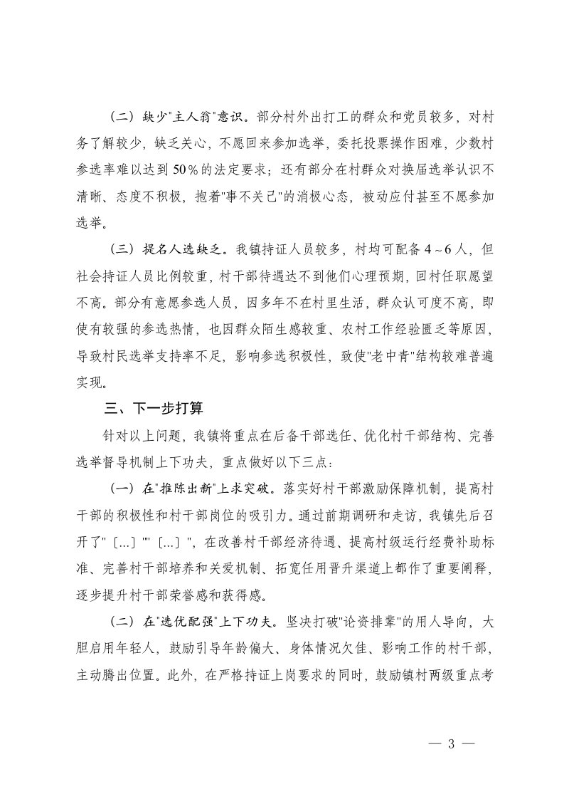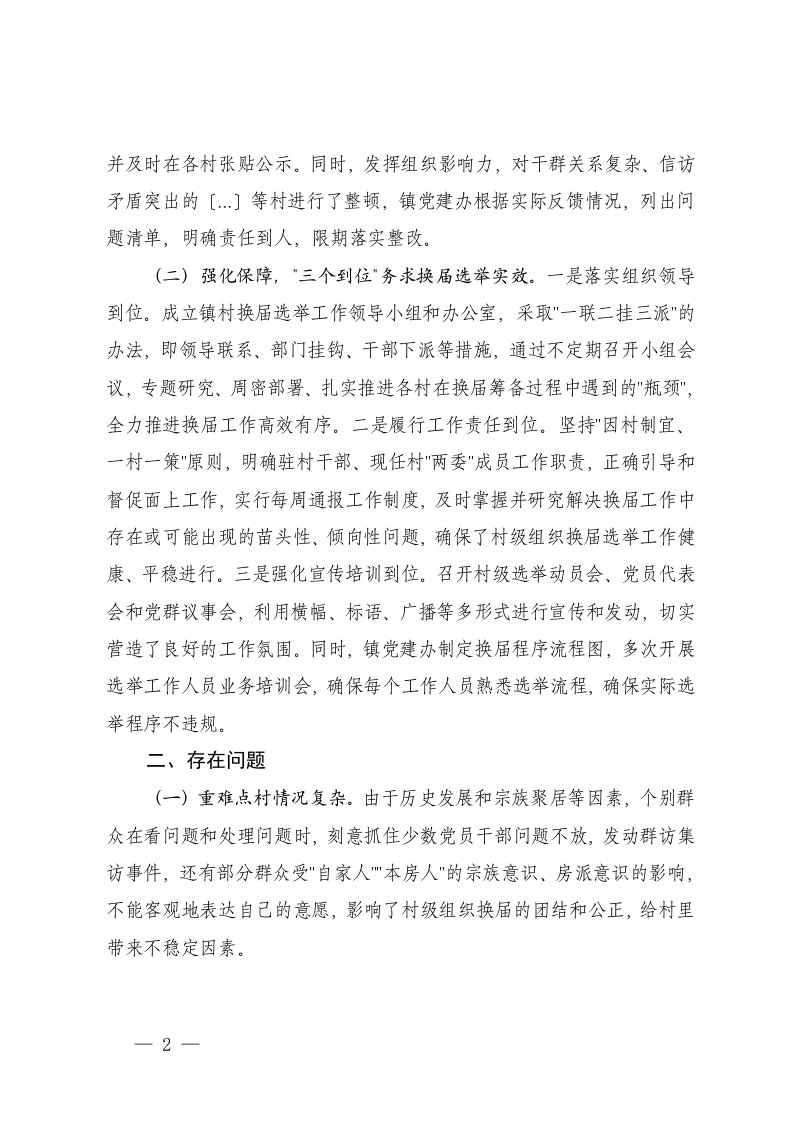 标题:2025年镇村级组织换届选举工作进展情况汇报党员大会正式选举主持词