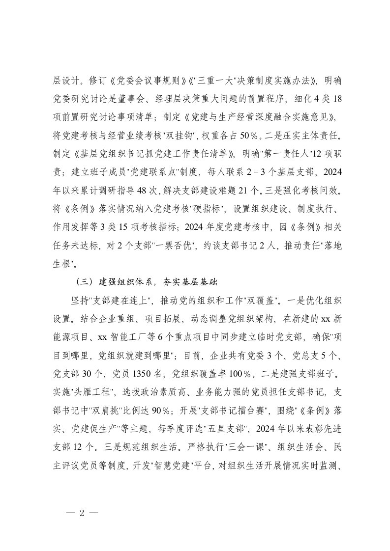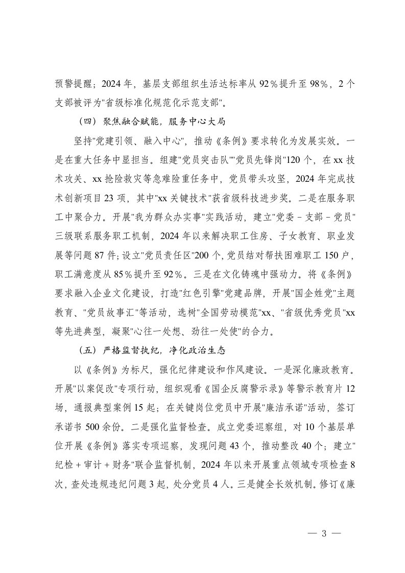 3篇2025企业中国共产党国有企业基层组织工作条例试行贯彻落实情况汇报
